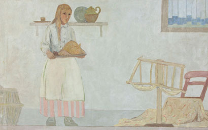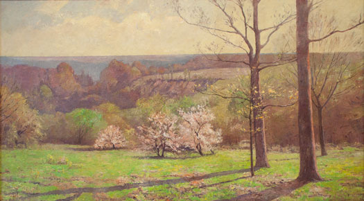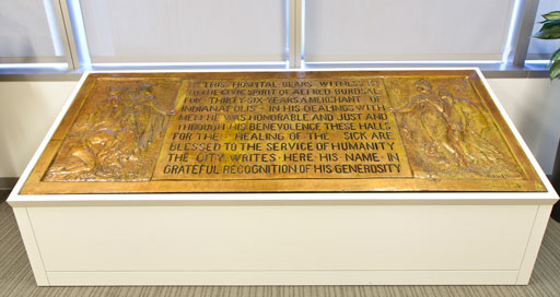In 1914, the St. Margaret’s Hospital Guild, a women’s society that supplemented public funding to Eskenazi Health, known as City Hospital at the time, provided money to beautify the facility’s first modern wards that were constructed with a bequest of Indianapolis businessperson Alfred Burdsal. Dr. T. Victor Keene, president of the Indiana Board of Health, worked with Forsyth, Stark, Steele, and 13 other Indiana artists to create large-scale murals to cover the Burdsal Units’ interior walls.