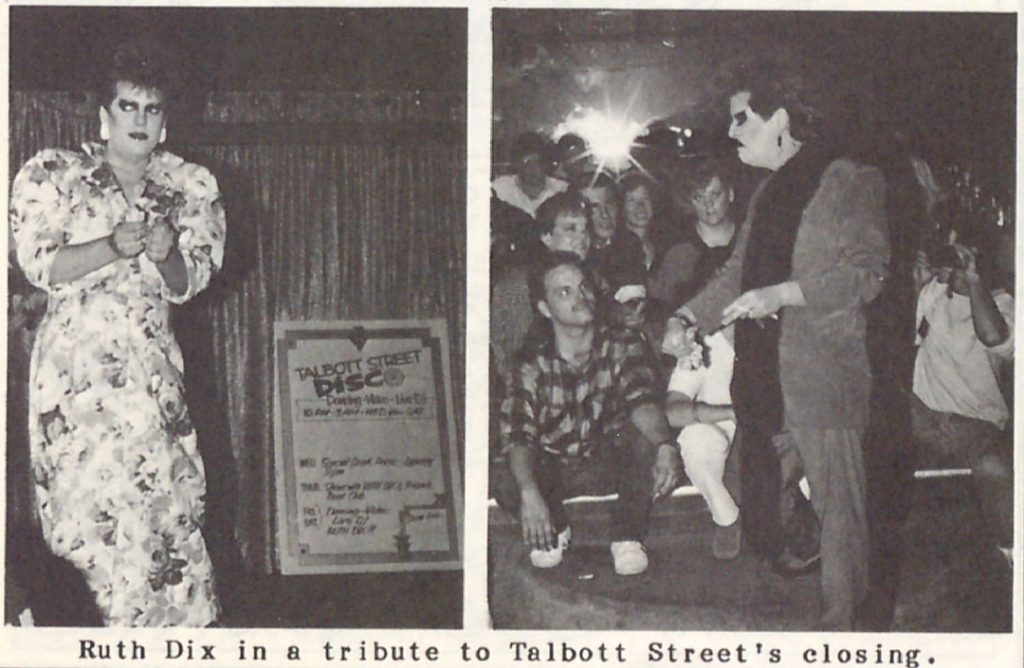 Talbott Street Night Club carried on the old Talbott Street Disco’s tradition of hosting drag shows, now featuring local favorites Alana Steele, Asia LaBouche, and Vicki St. James.